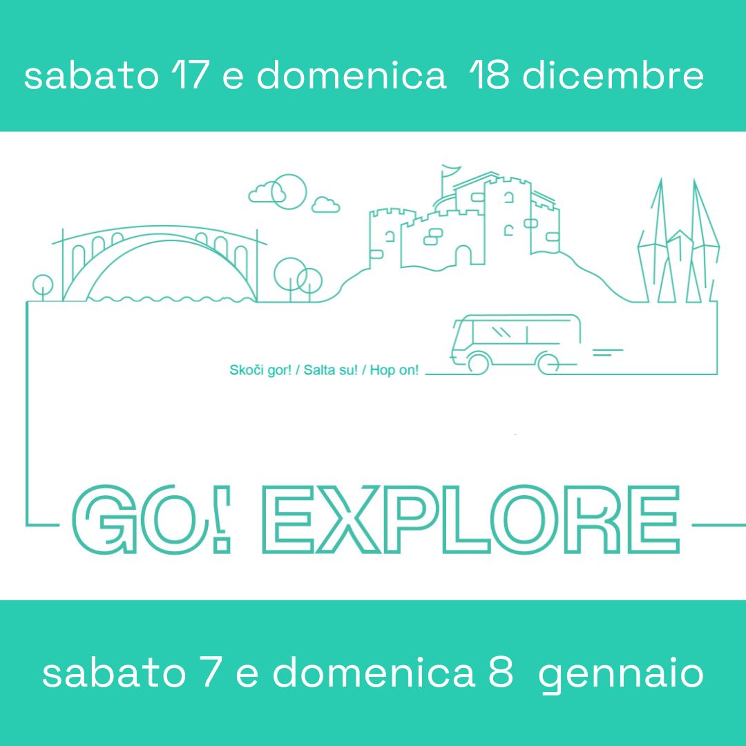 GO!ON GO!OFF Parti da Gorizia ed esplora i luoghi simbolo del territorio fra l'Isonzo ed il Carso. Sali e scendi dove vuoi, tutte le volte che vuoi. Un viaggio nella memoria per vivere GO!2025.
